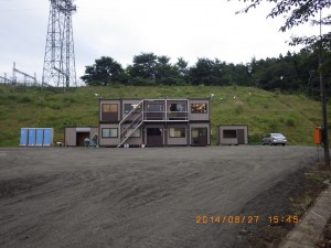 工事用仮設事務所設置しました 8月27日、現場に工事用仮設事務所を設置しました いよいよ来月から工事開始です 中央の大きいハウスは建設会社の事務所です 私達の事務所は右端の小さい奴です 寸法は1.8m×3.8m